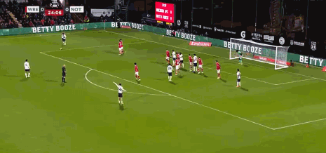 半场:森林0-2雷克瑟姆,卡卡切贴地斩,拉思伯恩破门